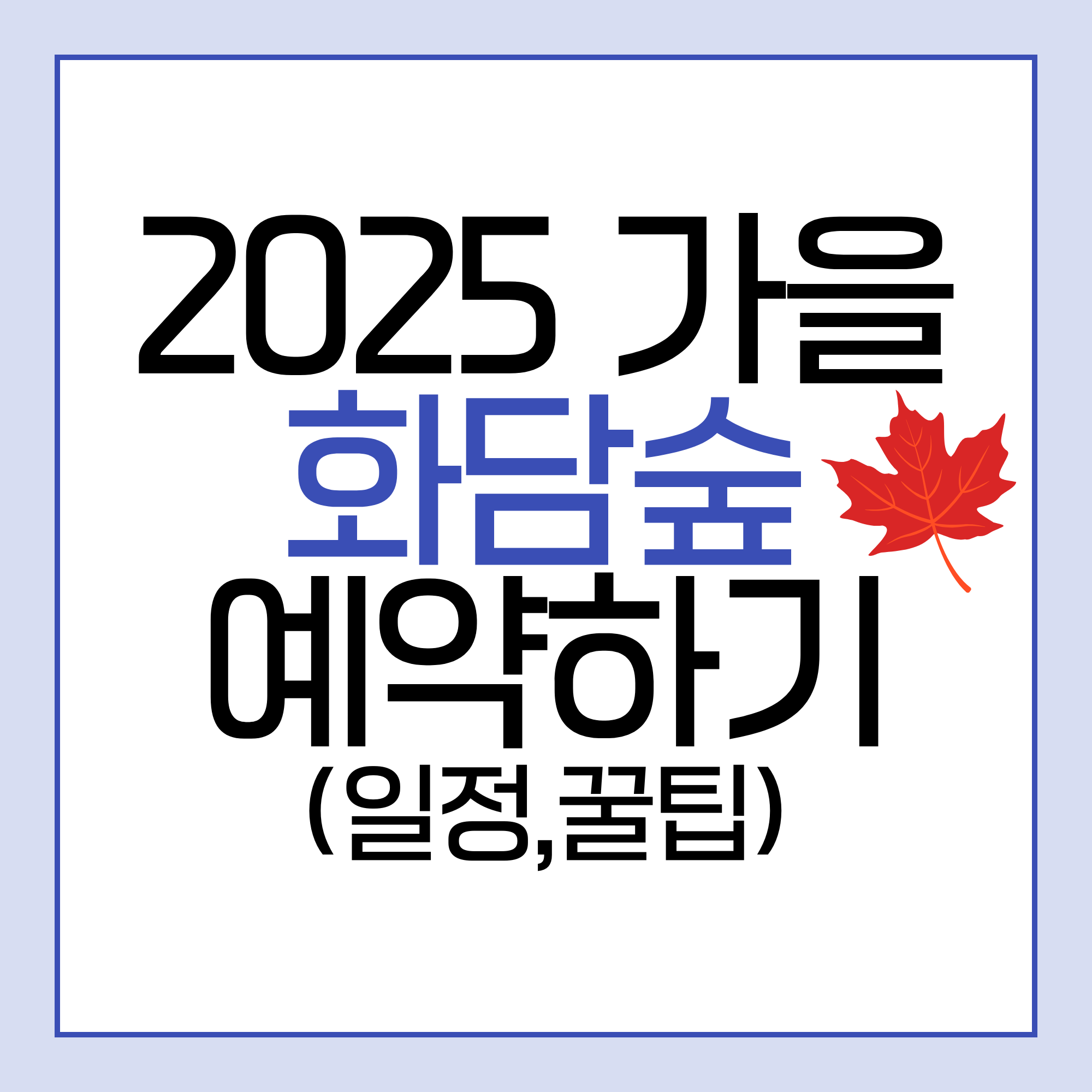 2025년 가을 단풍 시즌 예약은 9월 24일 (수) 오후 1시 정각에 오픈될 예정입니다. 예약은 매우 빠르게 마감되므로, 이 시간을 놓치지 않도록 미리 준비하시는 것이 중요합니다. ⏰